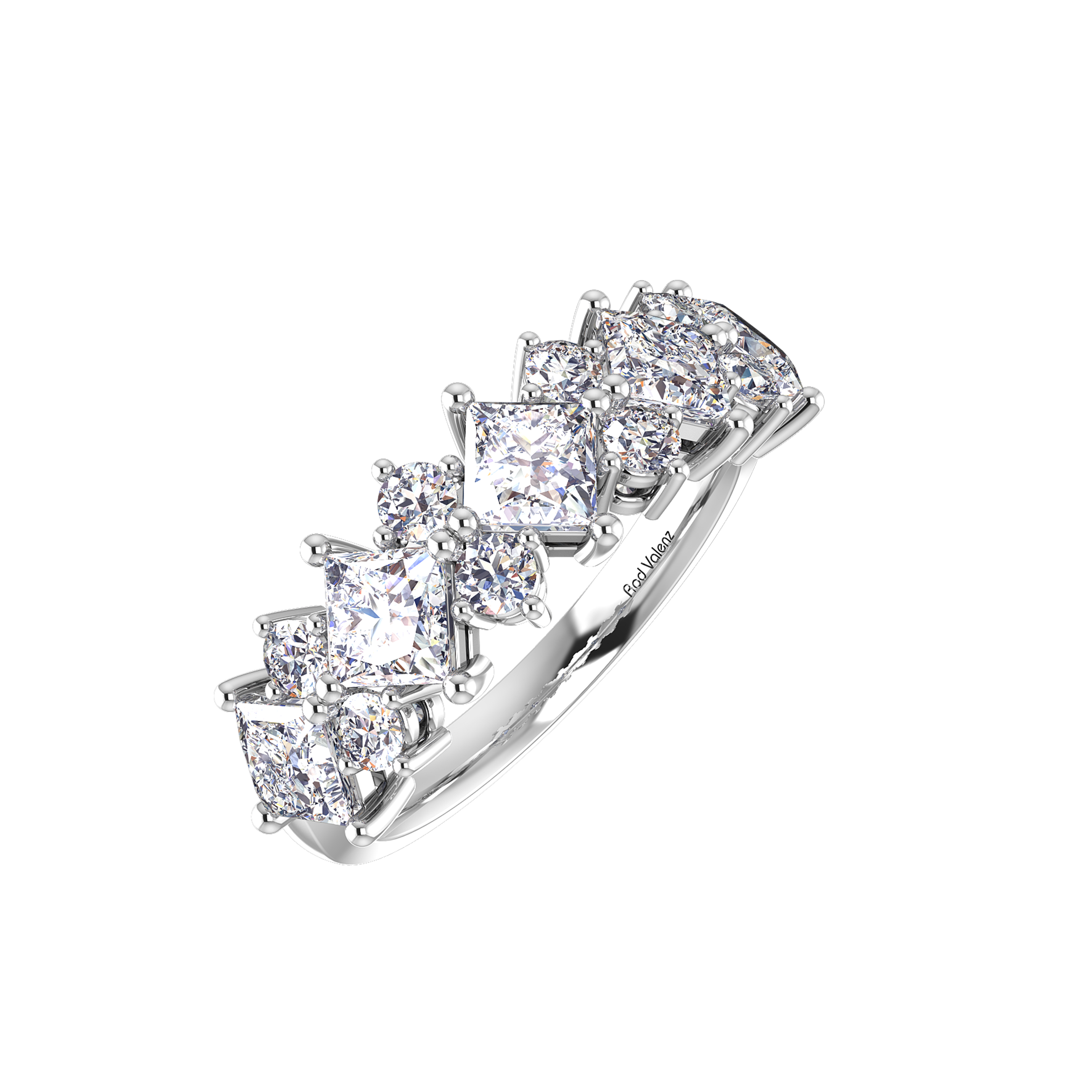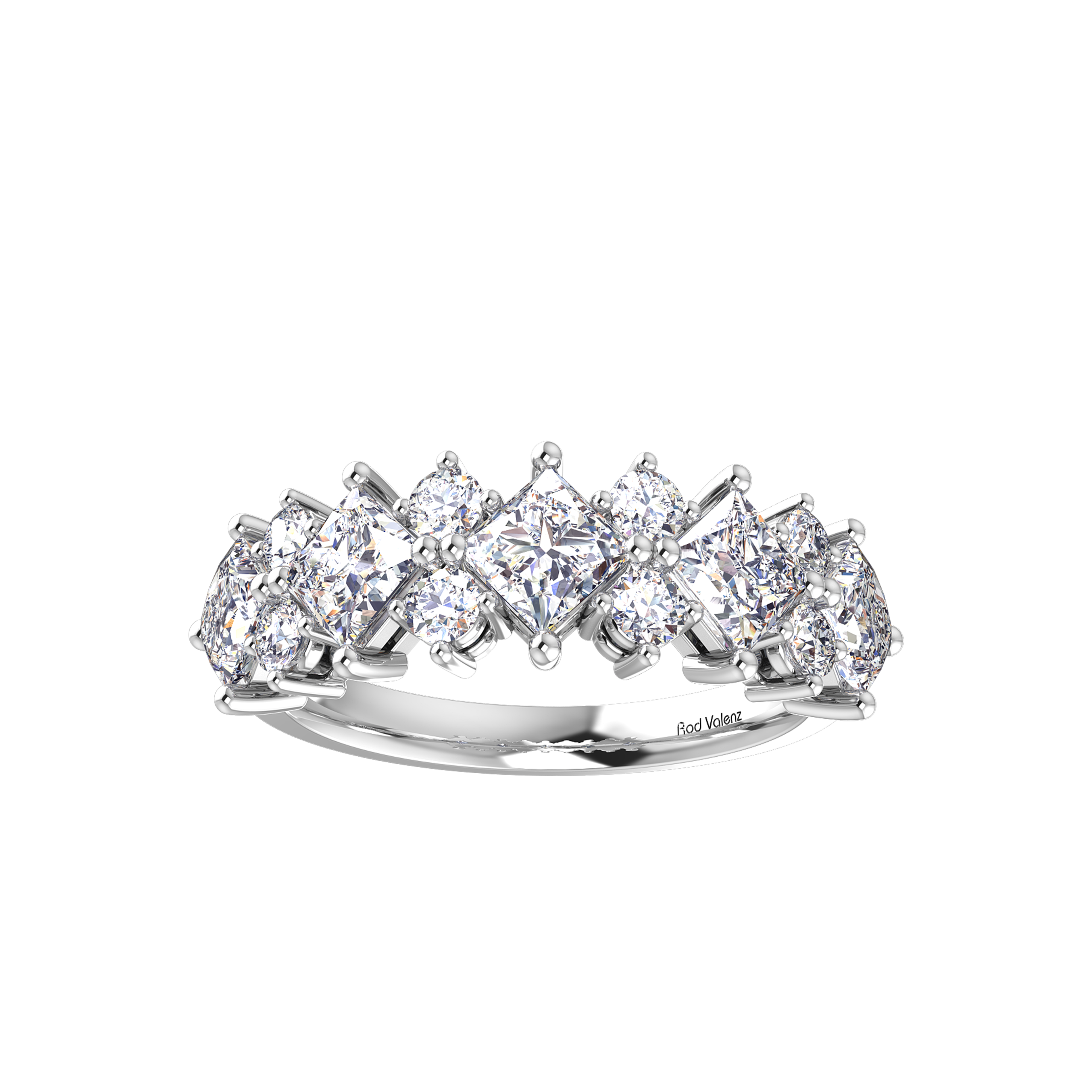 - Claw sett with 5 princess cut diamonds 3.40mm each.