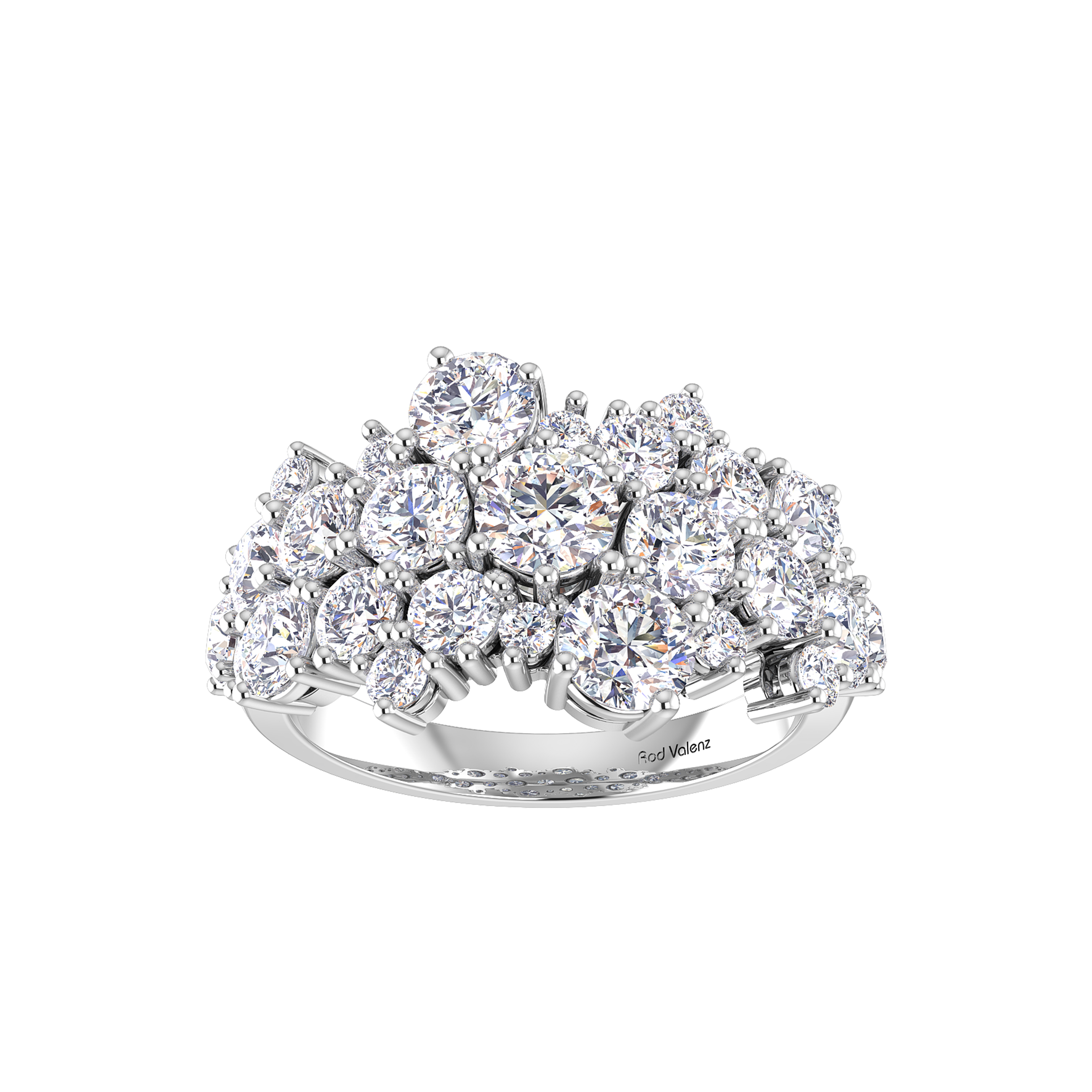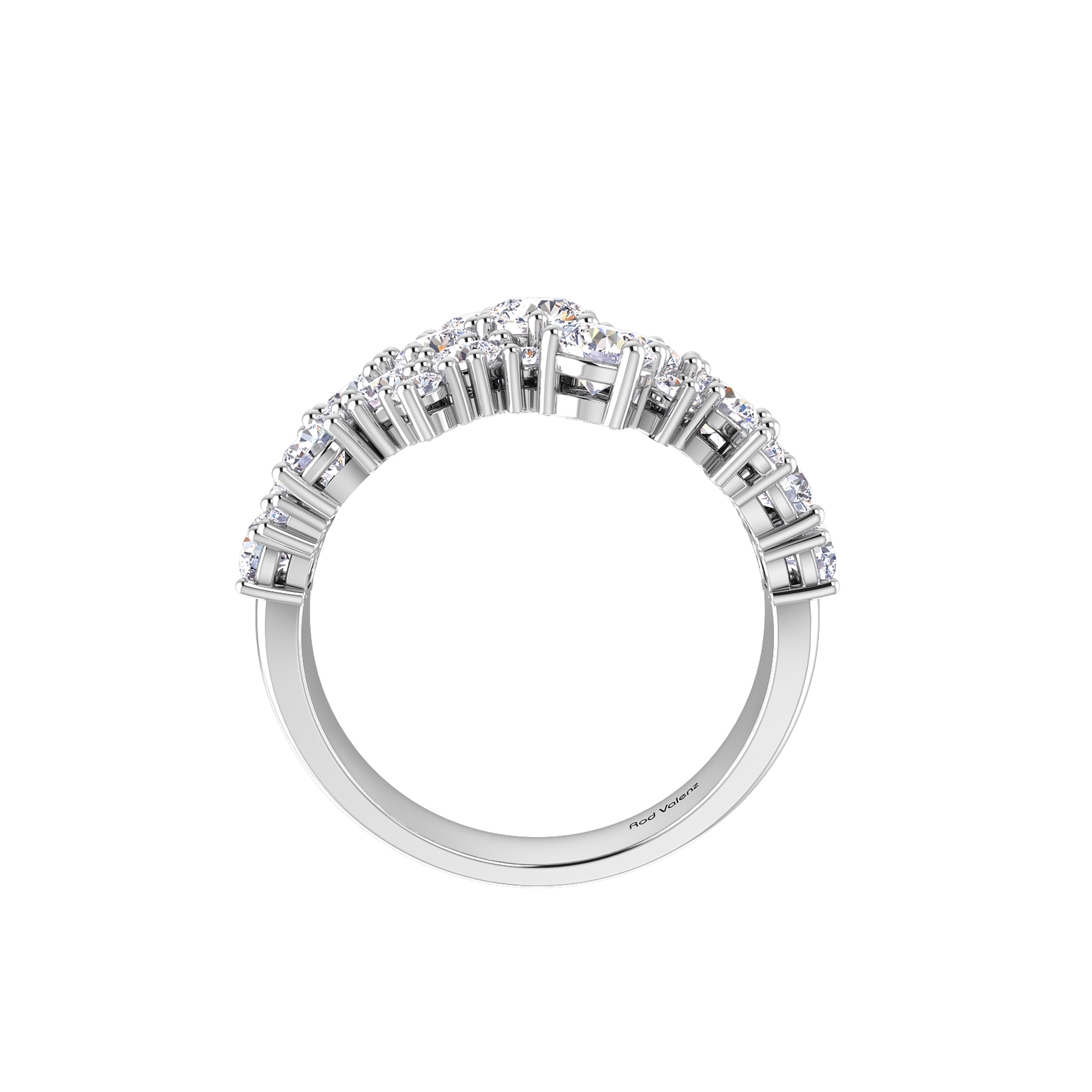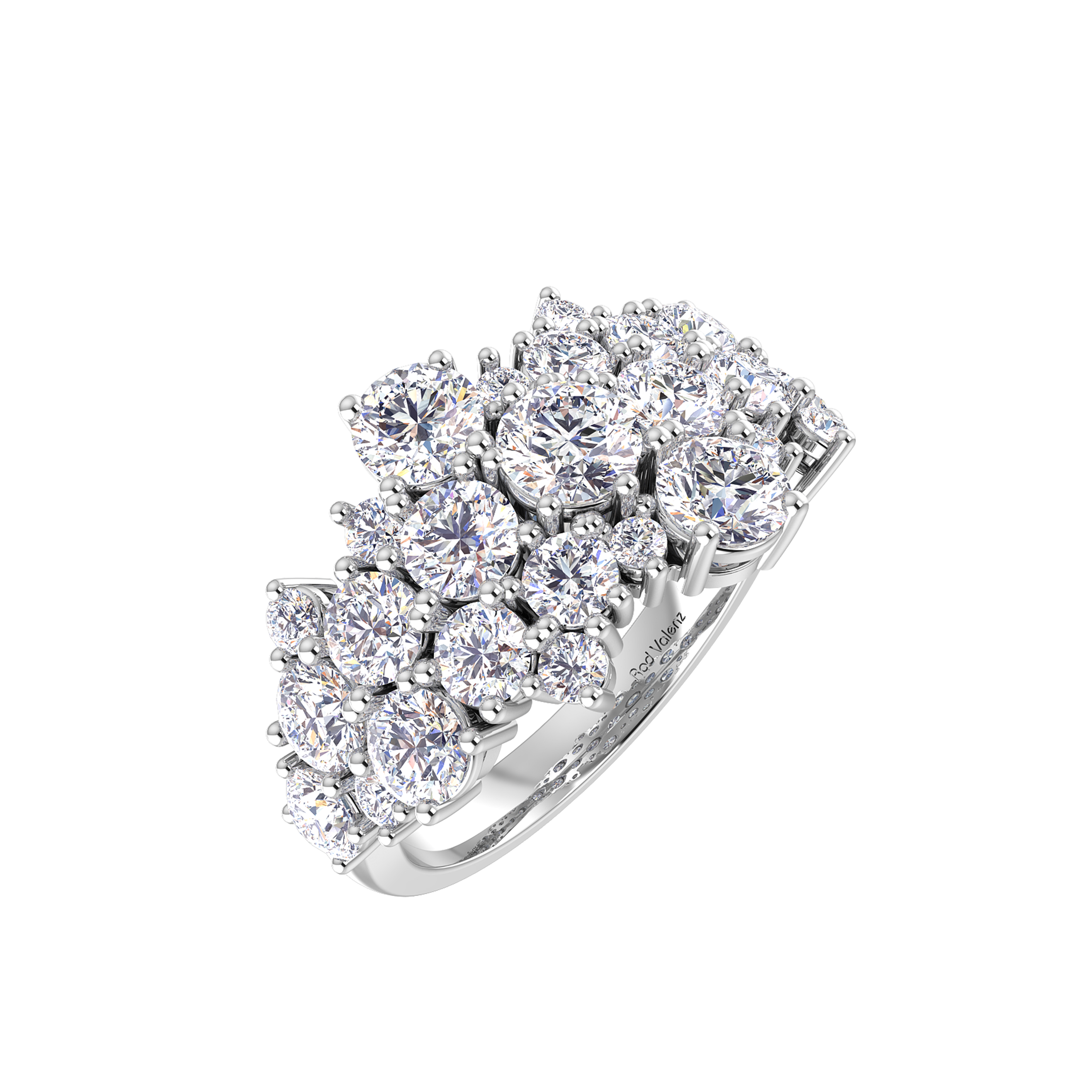 This Iconic Rod Valenz Design is created by an array of brilliant cut diamonds alternating in size to achieve it's unique 'BLING'.Beautifully handcrafted with fine prongs on a soft domed comfort fit band in platinum or 18ct gold.