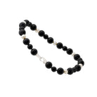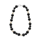Using 7x 10mm fresh water round pearls, 16x 20mm matt onyx and 8x 12mm matt onyx on a sterling silver clasp. Double knotted for a luxurious feel.