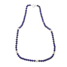 Using 88 x 12mm Lapis lazuli gemstones and 5 x 10mm fresh water round pearls.