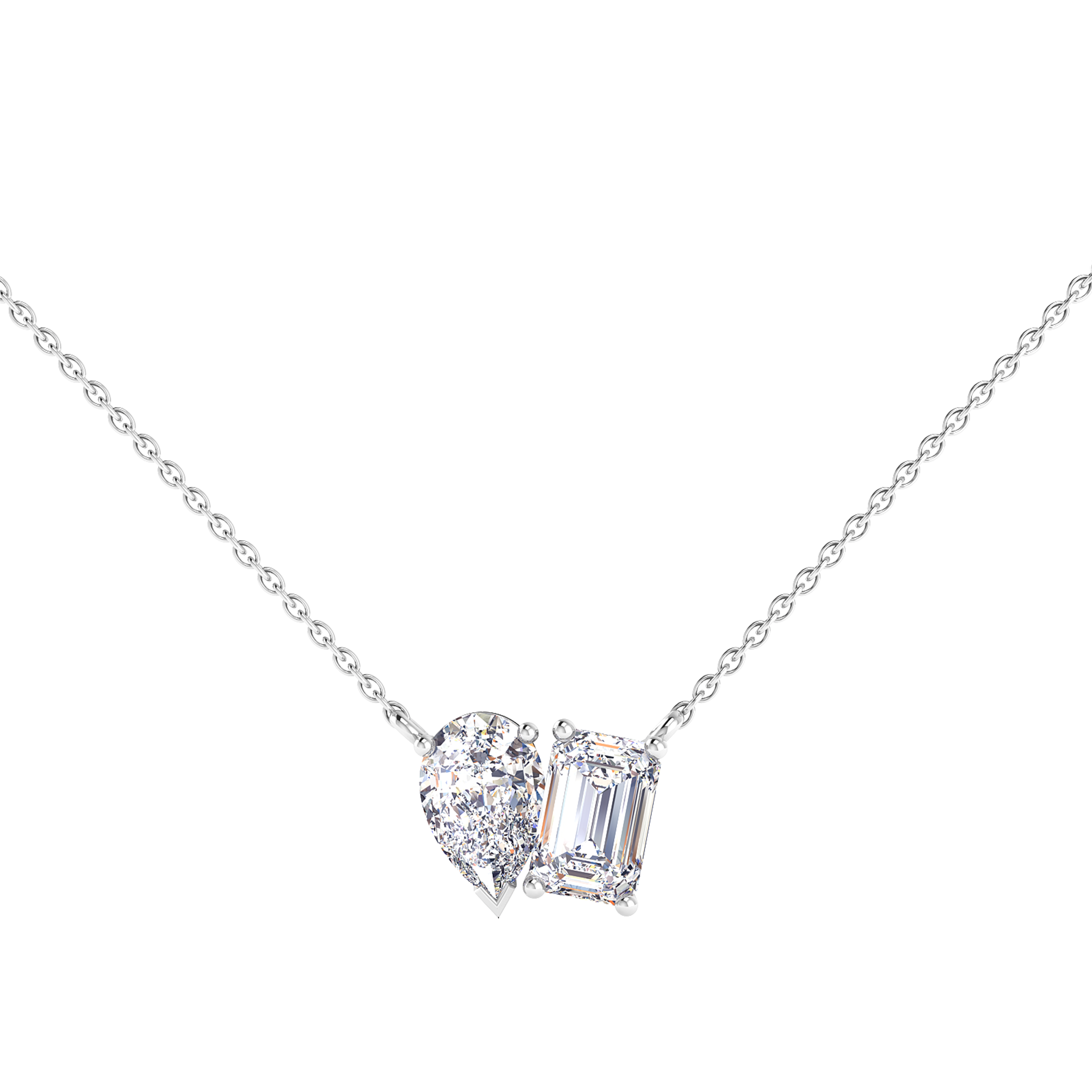 This classic Rod Valenz Toi et Moi Necklace features a 0.70 carat Pear cut lab grown diamond and a 0.80 carat Radiant cut in an elegant open four-prong setting, allowing maximum light performance. Including 14K cable chain.