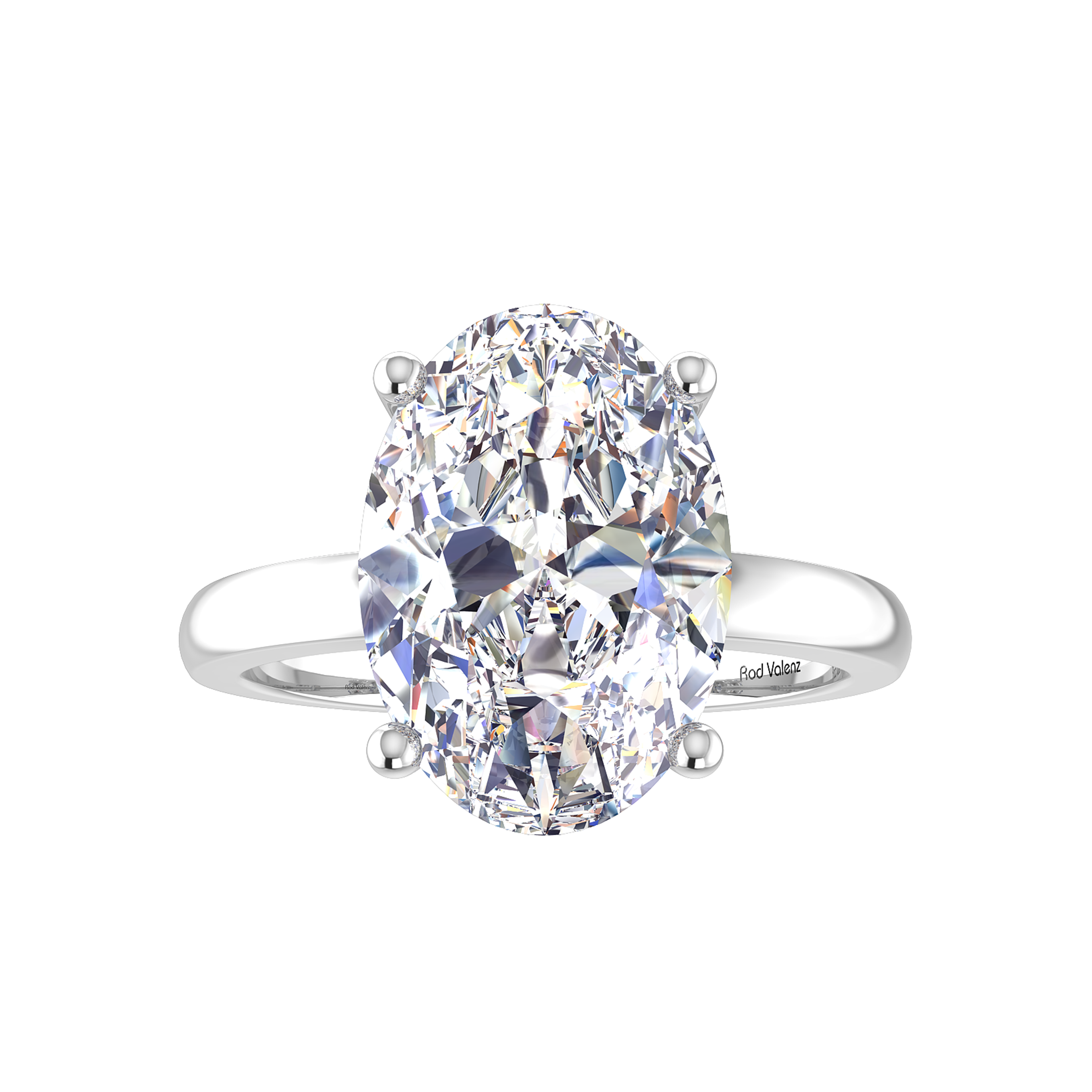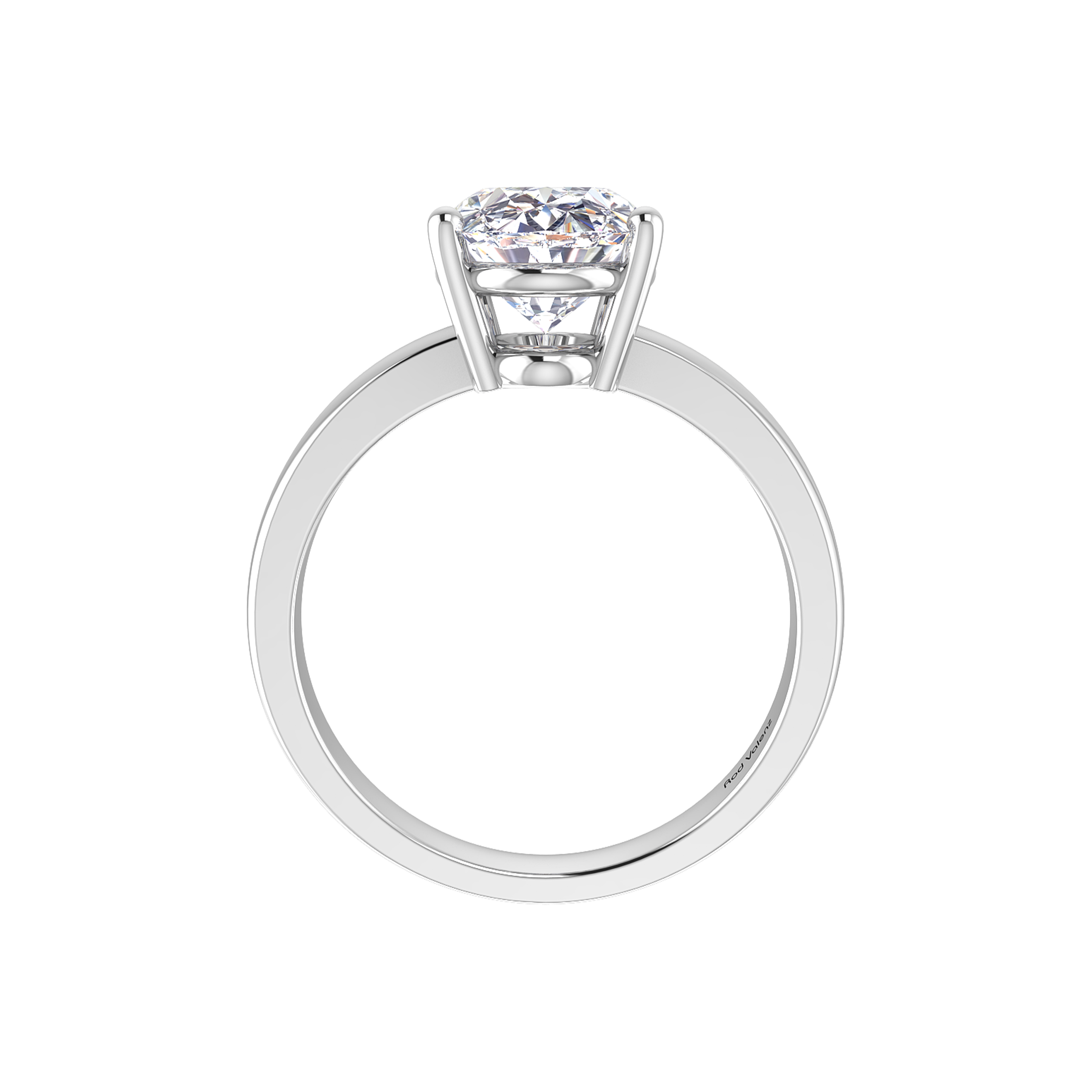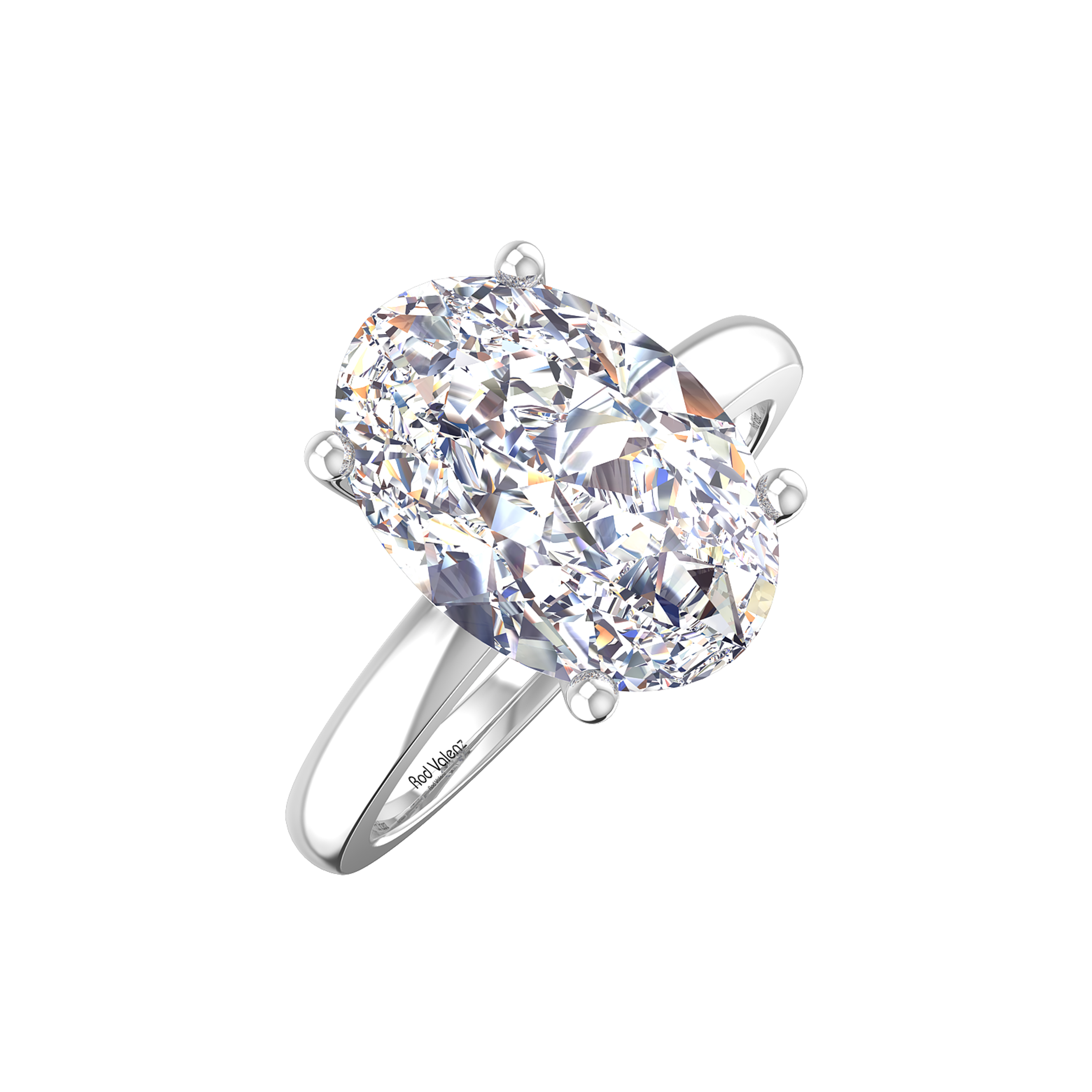 This elegantly simple engagement ring features a gorgeous 3.00 carat D-VS1 oval-cut Lab-Grown diamond in a fine four-prong setting, balancing gracefully on an ultra-slim band. Handcrafted in either 18ct gold or platinum.