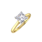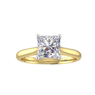 This classic solitaire engagement ring features a princess cut diamond in an open four prong setting designed to allow maximum light performance on a fine domed band. Meticulously handcrafted in platinum or 18ct gold.