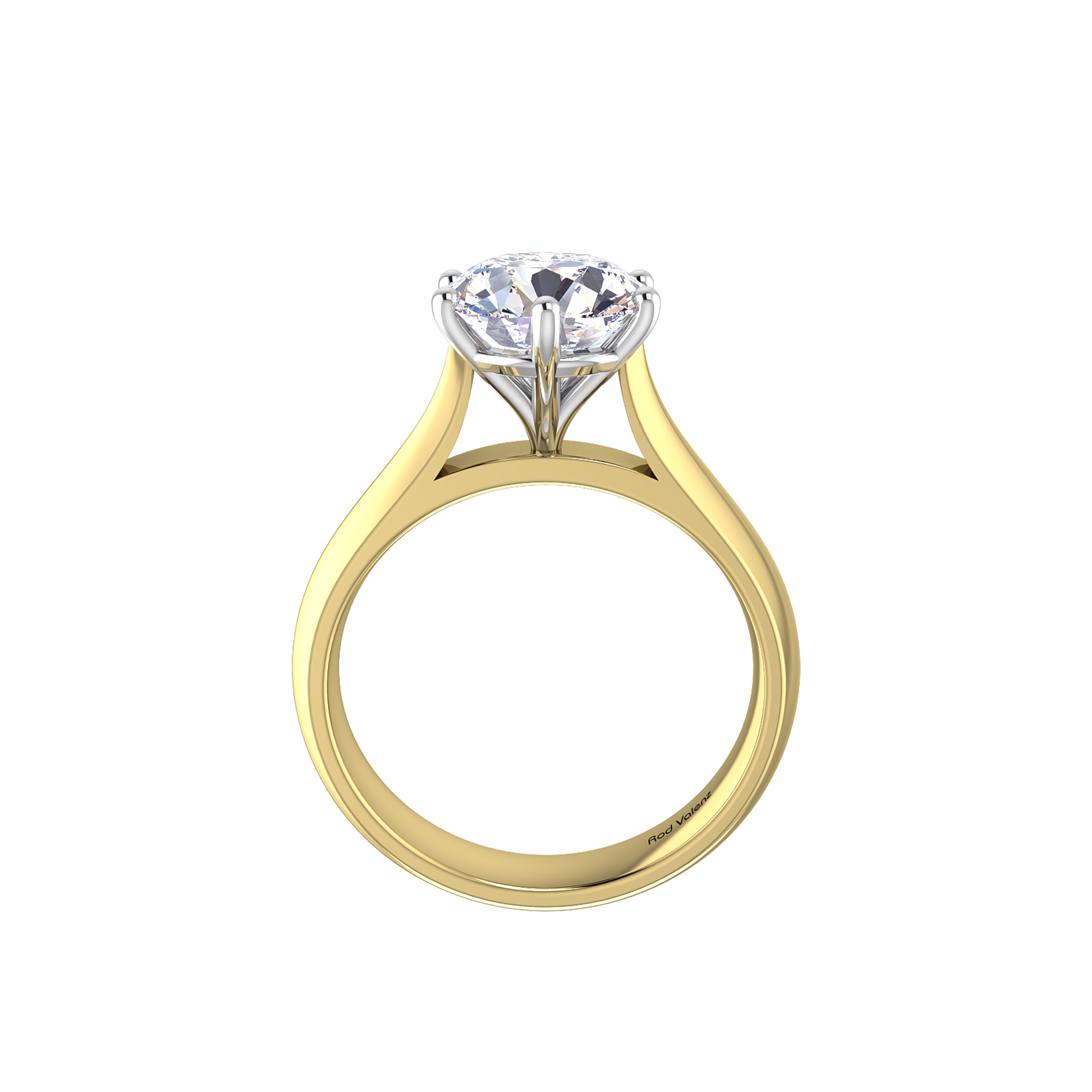 This superb solitaire engagement ring features a round brilliant cut diamond