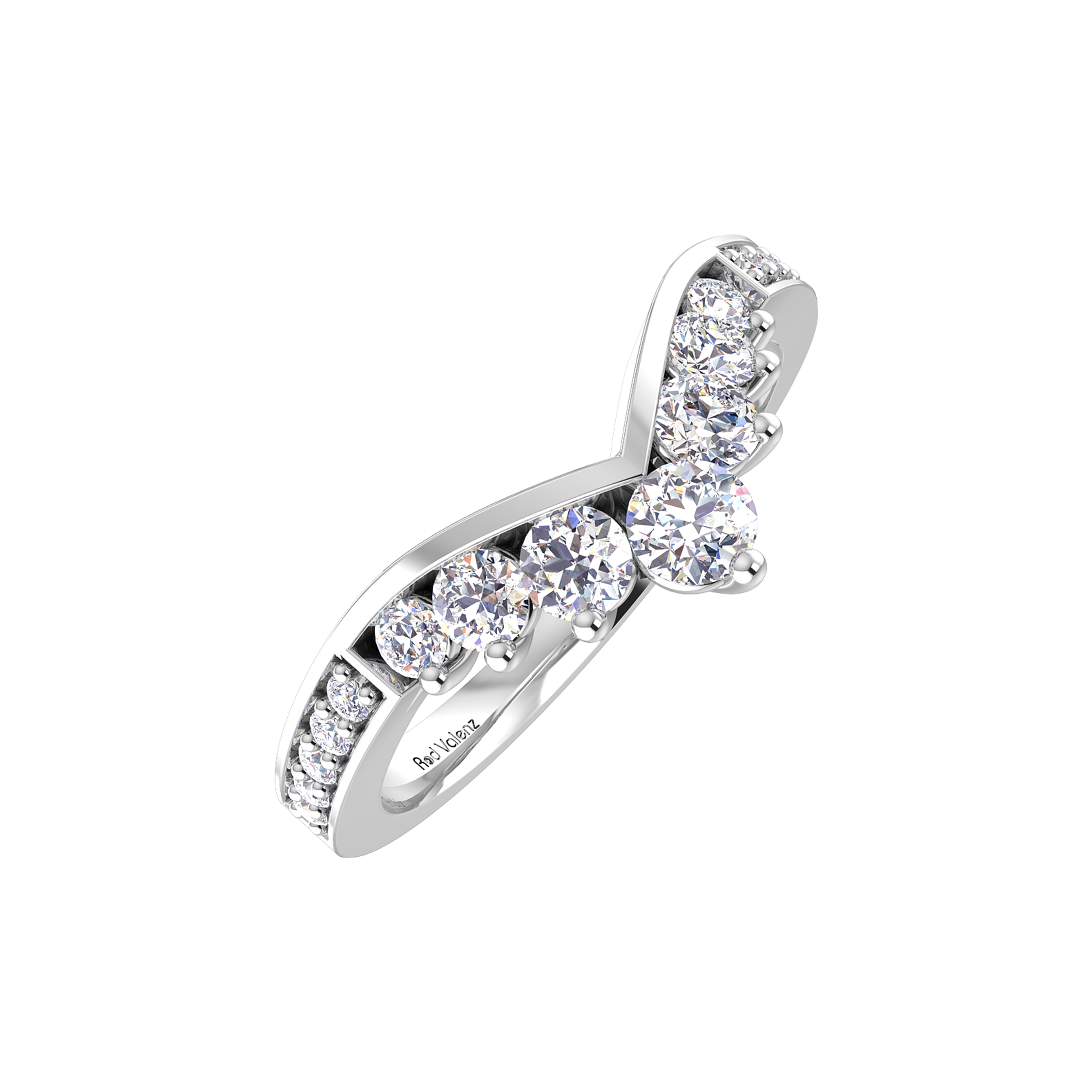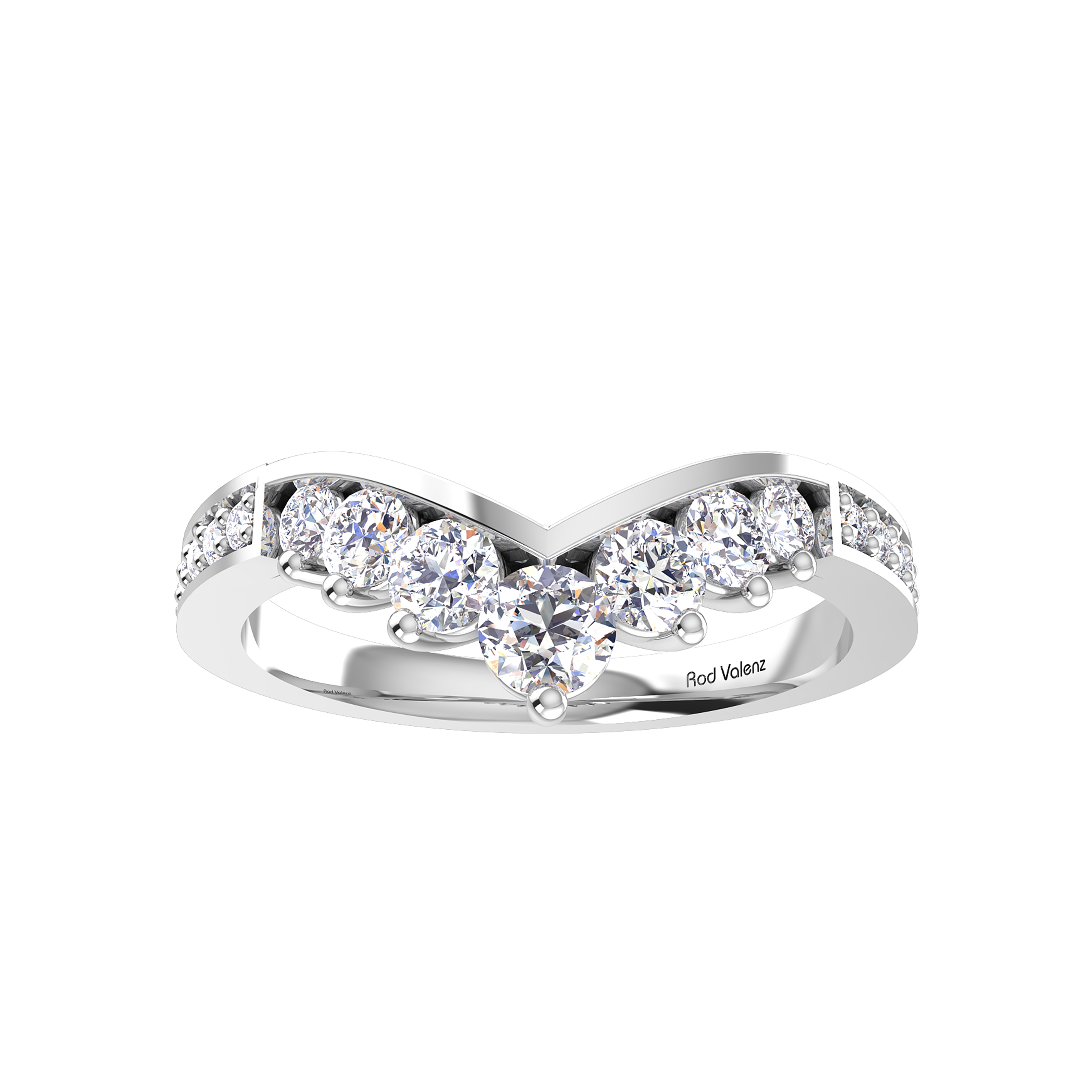 This exquisite ring features round brilliant cut diamonds, flawlessly matched for cut, shape, and colour, set in fine shared-prong settings, on a soft domed comfort fit band meticulously handcrafted in platinum or 18ct gold palladium fine white gold.