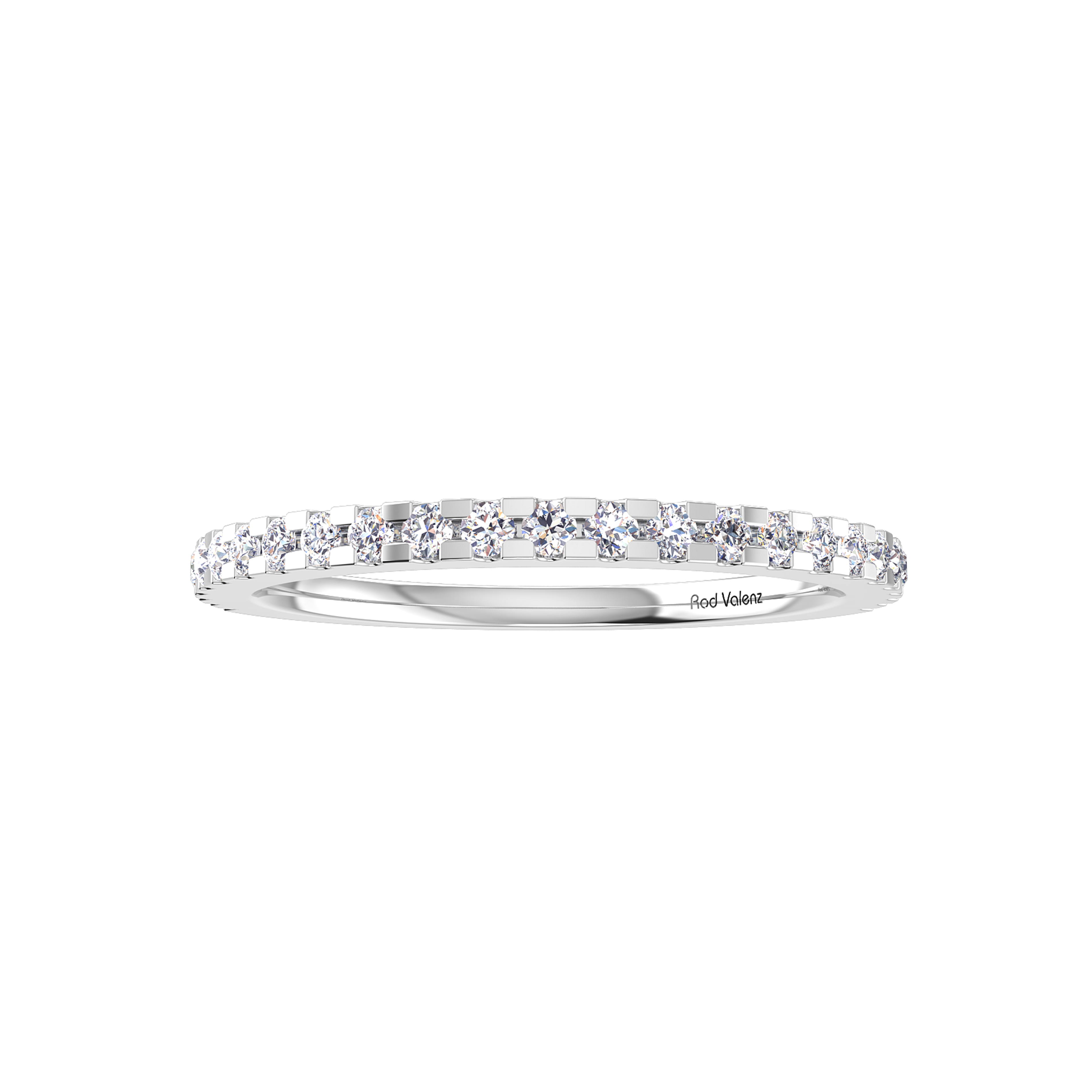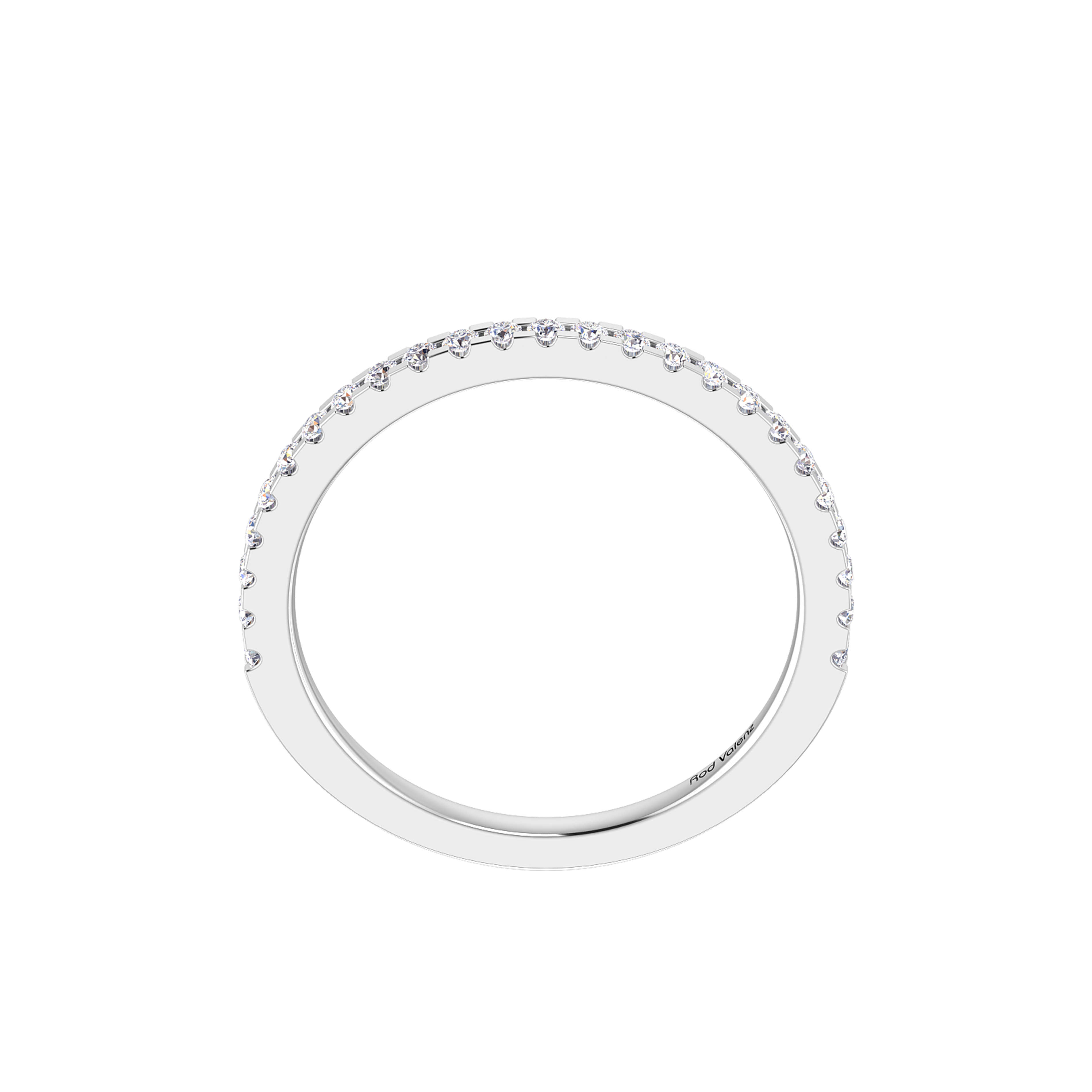 This exquisite fine ring with natural diamonds flawlessly matched for cut, shape, and colour, set in fine prong settings, on a flat profile and comfort fit band meticulously handcrafted in platinum or 18ct gold.