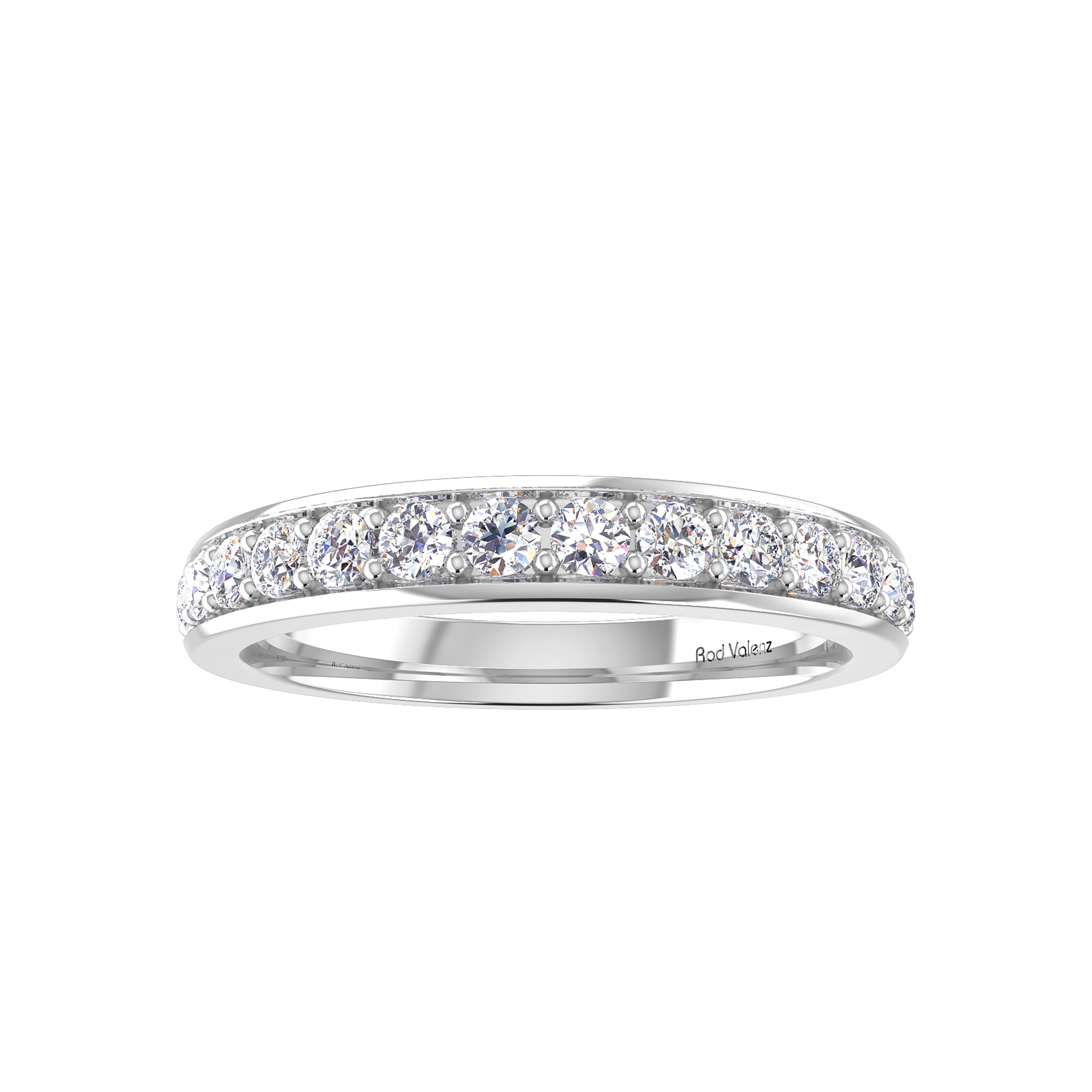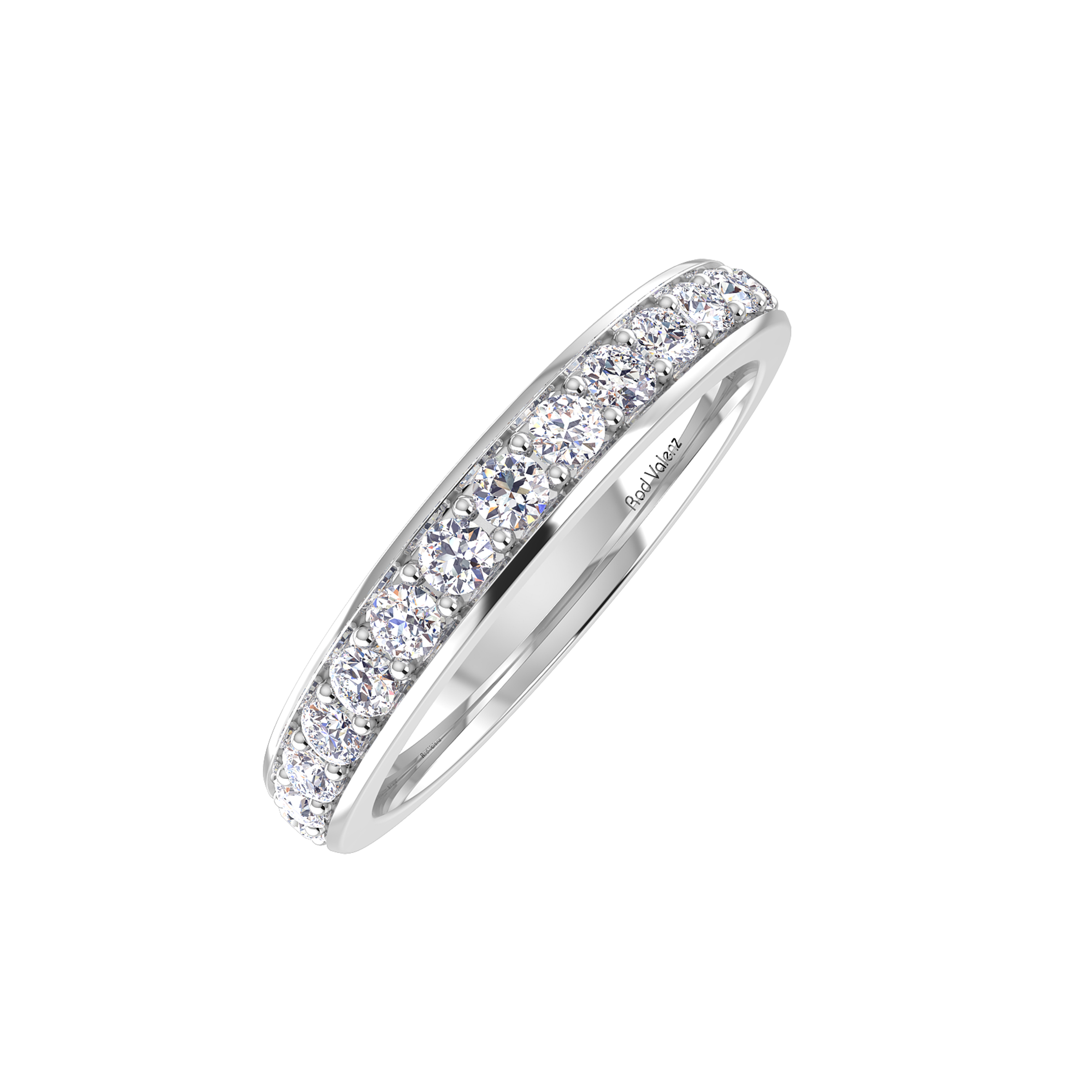 A simple rounded ring with natural matching diamonds set tightly together in micro-claw settings around a domed solid made band providing a seamless array of brilliance across the finger. Handcrafted in either platinum or 18ct gold