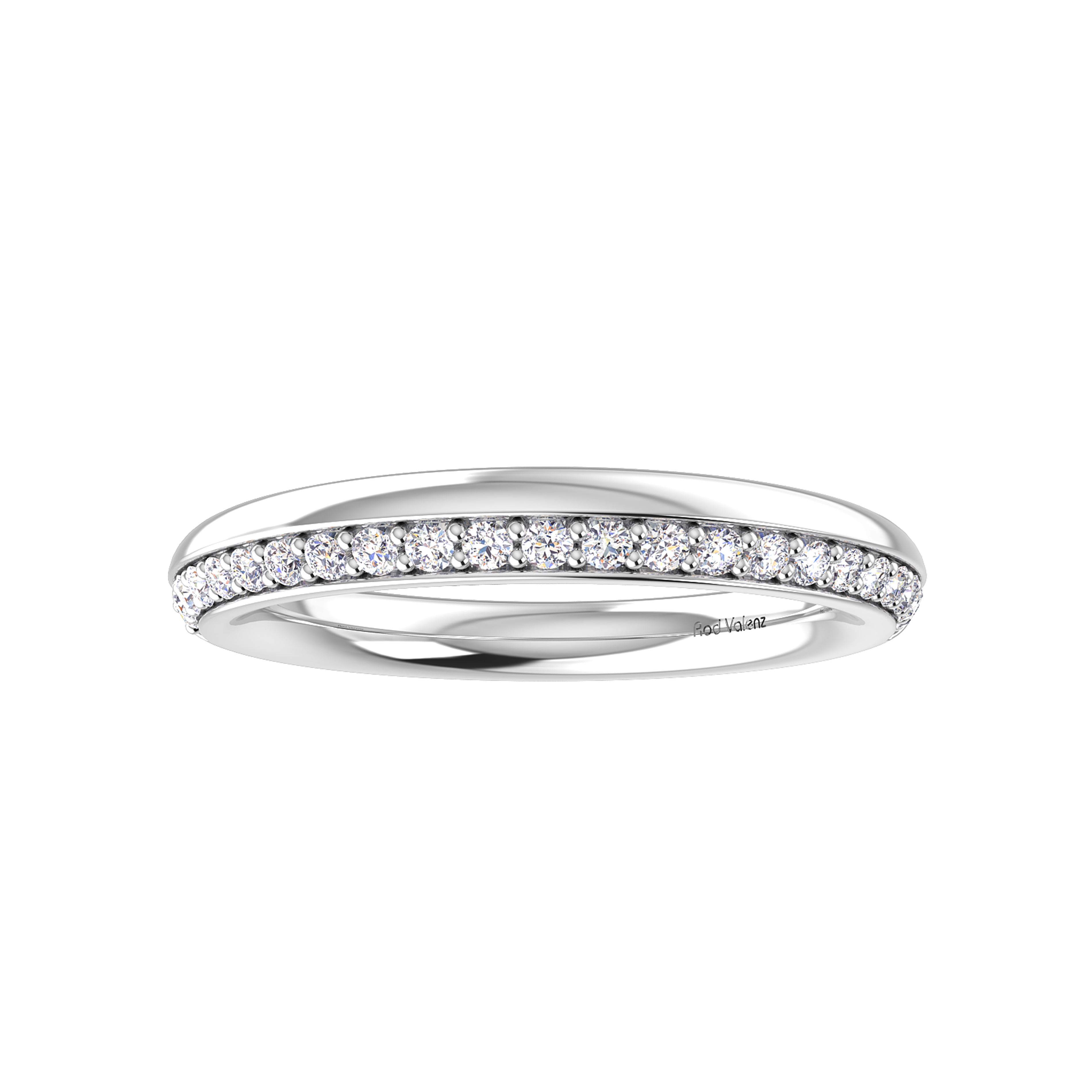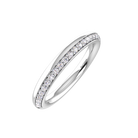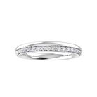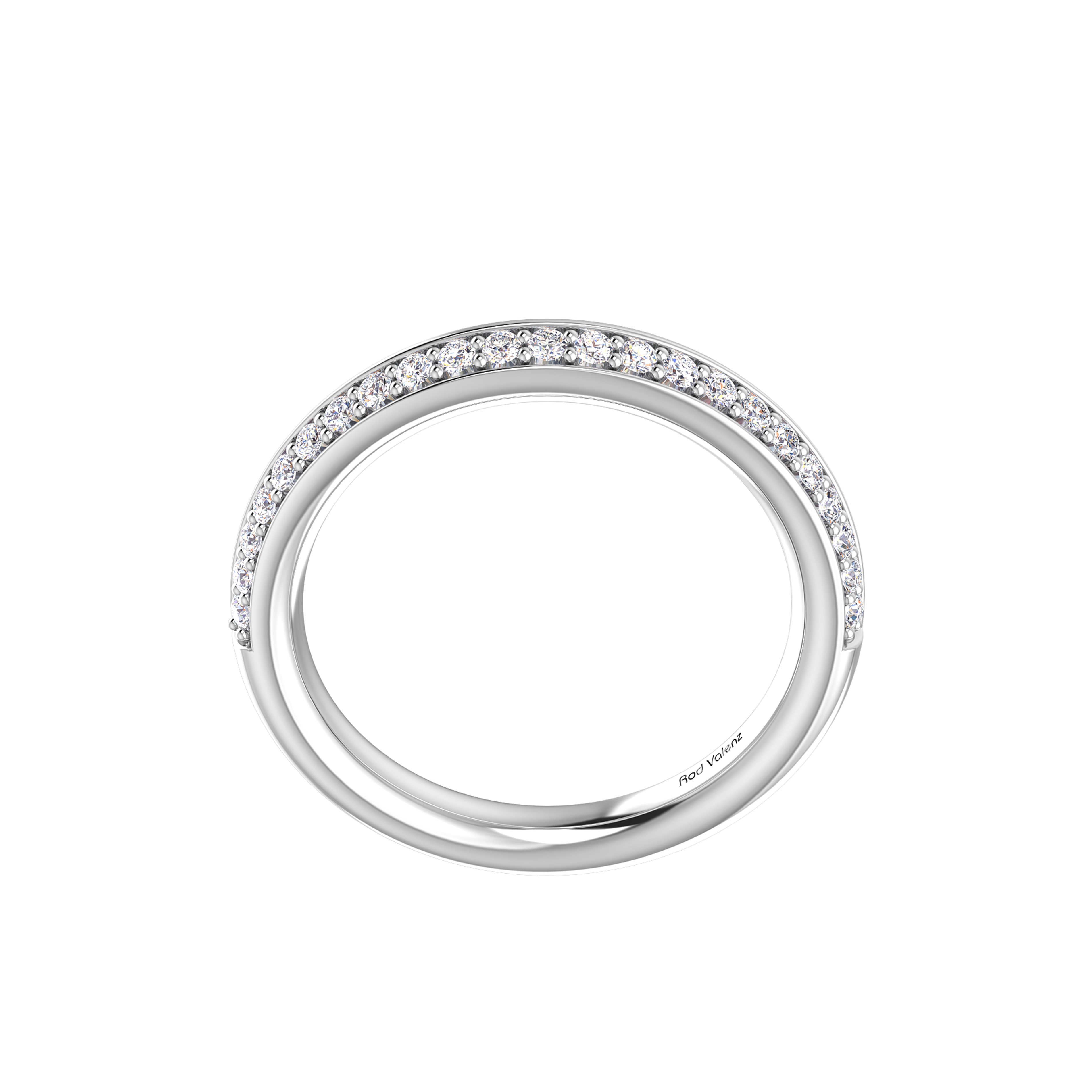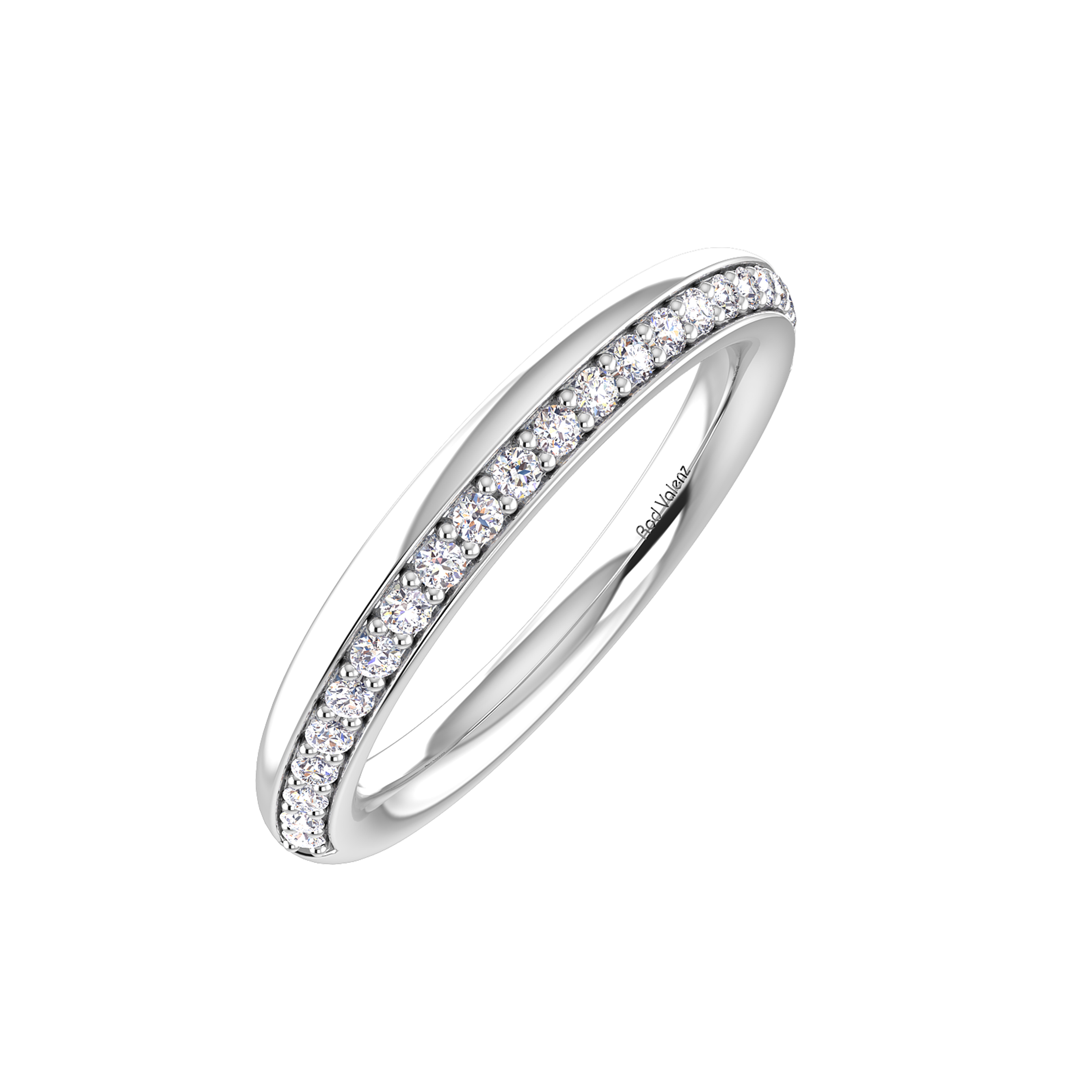 This exquisite and unique ring features micro claw set diamonds to the side on angle, flawlessly matched for cut, shape, and colour, set in fine shared-prong settings, on a soft domed comfort fit band meticulously handcrafted in platinum or 18ct gold.