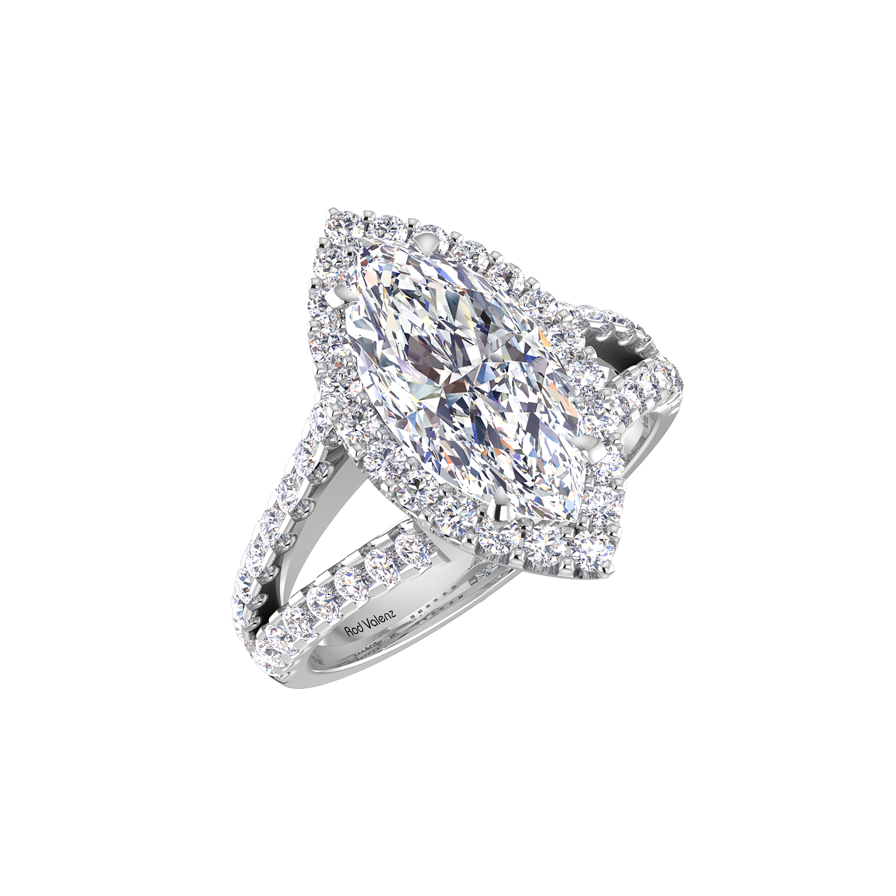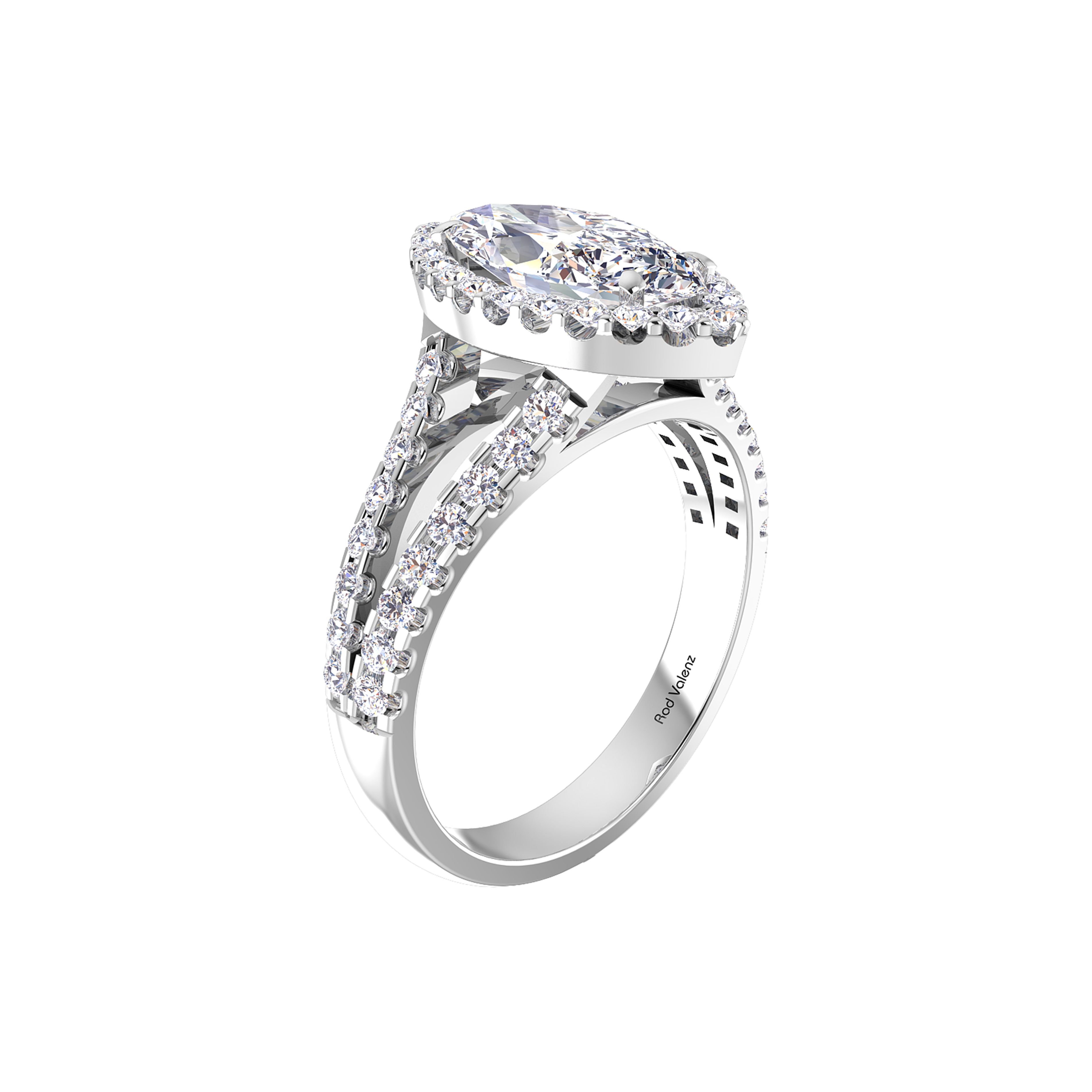 A striking balance of tradition and modernity, this Engagement Ring Featuring a Natural 1.58ct Marquise cut centre diamond with split diamond bands, this exquisite design reflects the artistry of past and present jewellery traditions.