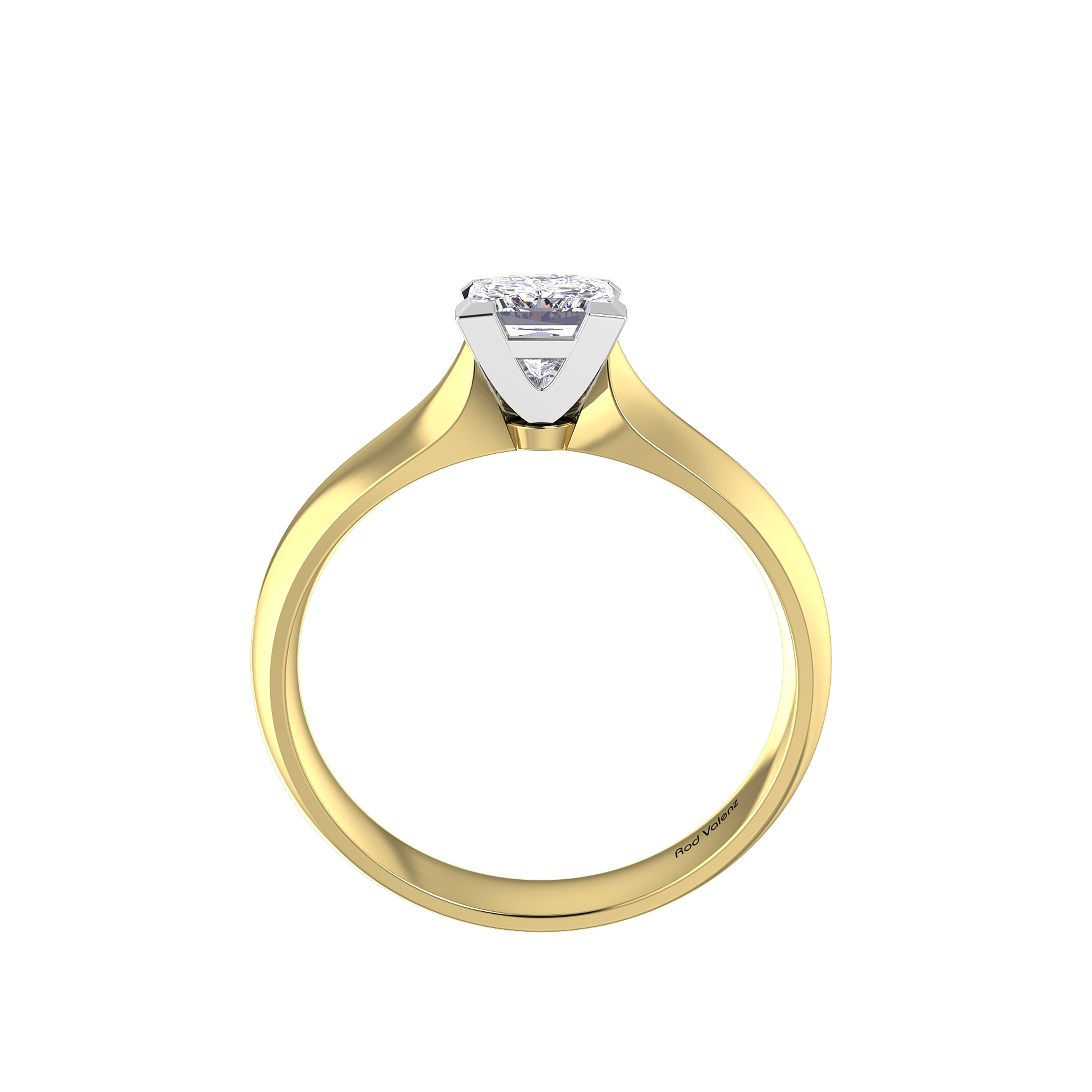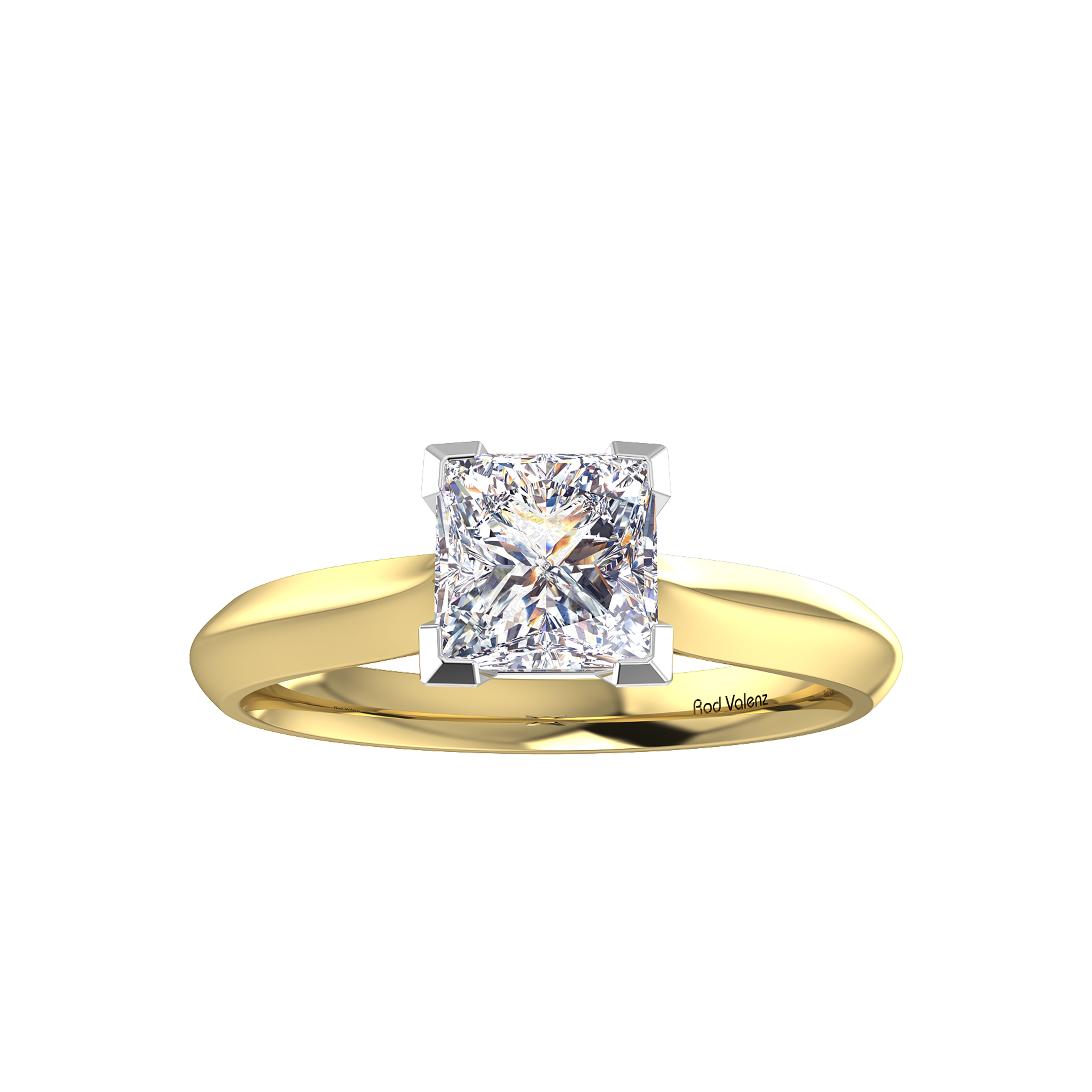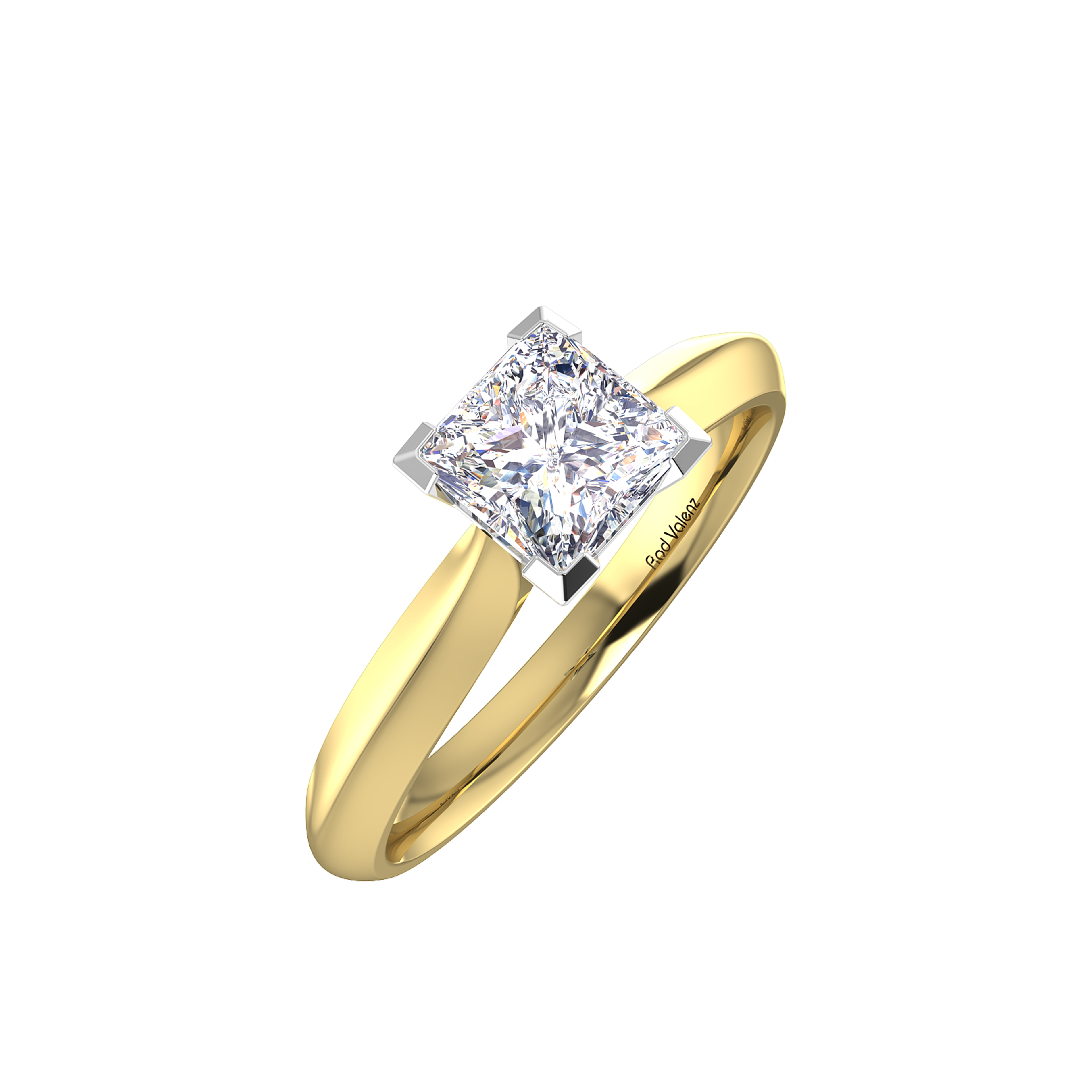 This classic Rod Valenz solitaire engagement ring features a perfectly cut natural Princess cut diamond in an open V claw setting designed to allow maximum light performance and hard wear. Meticulously handcrafted in platinum or 18ct gold.
